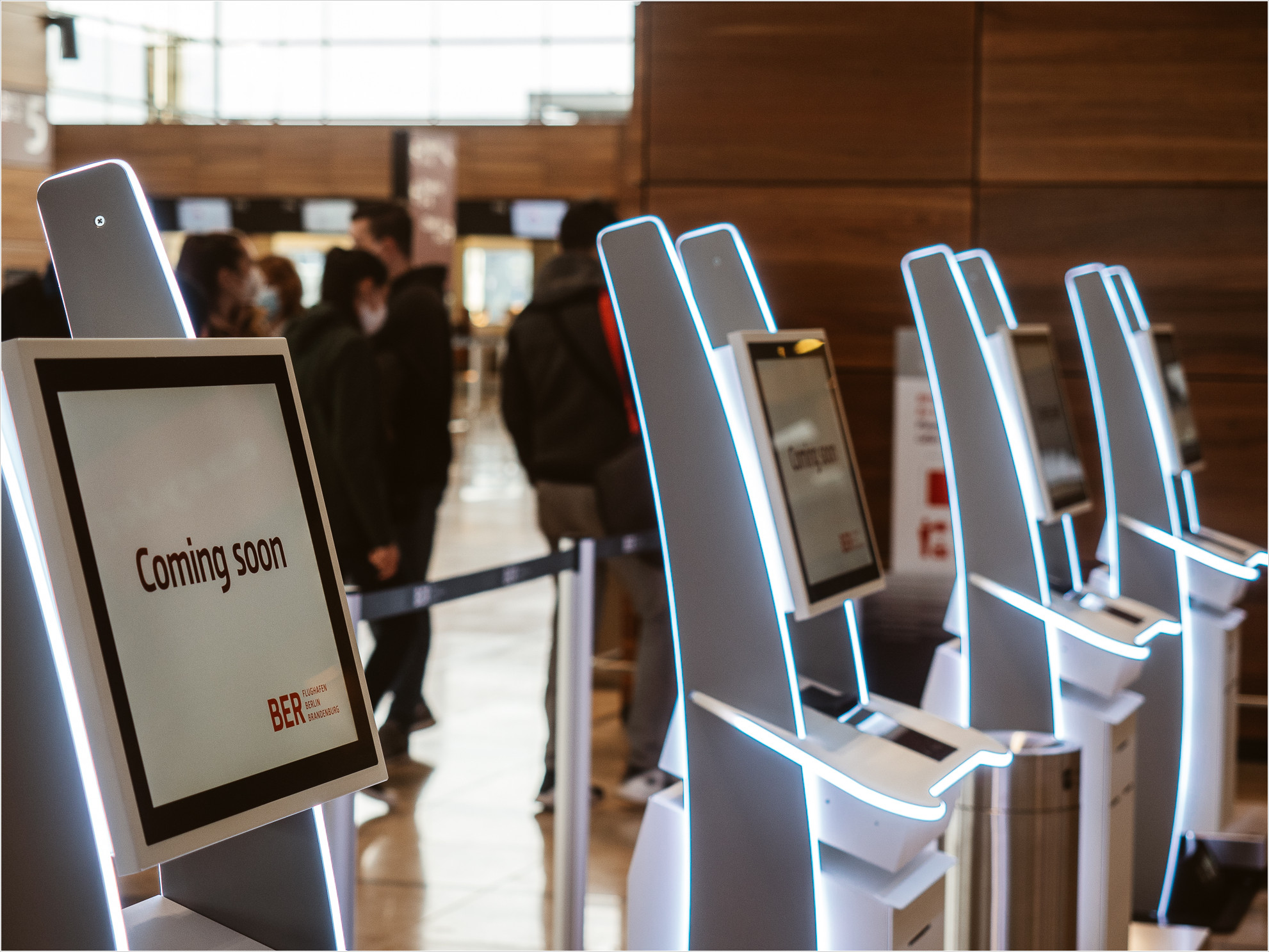 Am Ende schieße ich noch ein paar Detailfotos des in angenehmen warmen Holztönen gehaltenen Terminals und muss feststellen: Es fühlt sich ganz normal an. Ein Flughafen wie man ihn auch anderswo auf der Welt finden würde. Unaufgeregt, unspektakulär, aber weiter kurze Wege zu den Gates. Passt irgendwie zu Berlin.