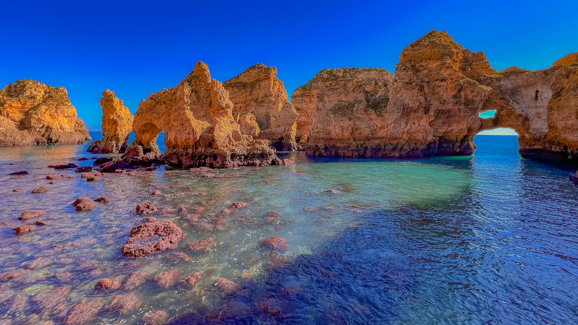 Die Ponta da Piedade (portugiesisch: Spitze des Erbarmens) ist die Spitze einer steilen Landzunge, die bei Lagos in den Atlantik ragt. Eine 20 Meter hohe Felsklippenlandschaft mit versteckten Stränden und Buchten, und der Möglichkeit mit Booten in die Grotten zu fahren. Die Ponta da Piedade gilt als eine der schönsten Sehenswürdigkeiten in Portugal und als die schönste Felsformation der Algarve. (Wiki)