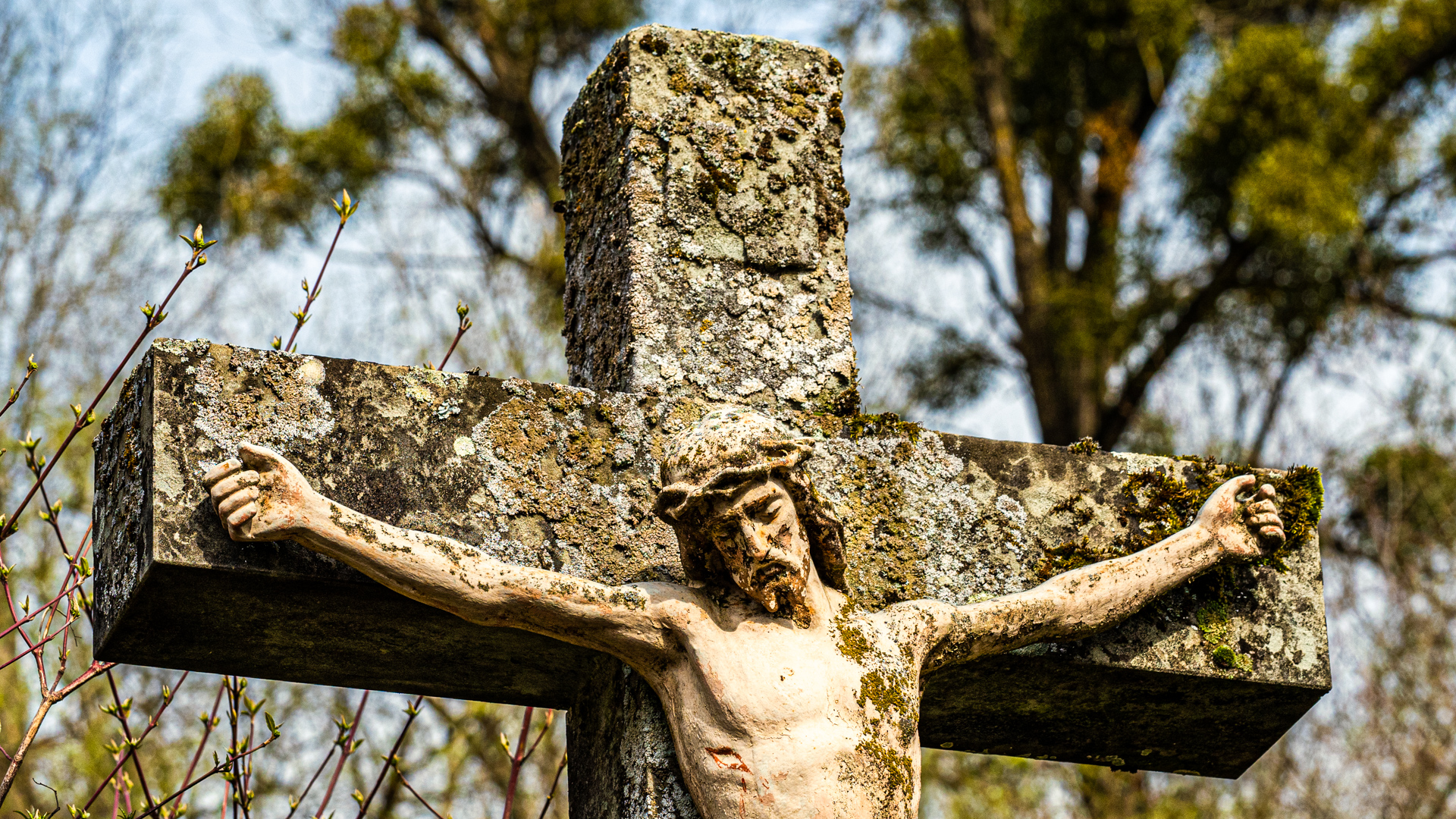 Passend zu Ostern fiel mir das leicht verwitterte Kreuz in die Hände. Es steht am Bodensee in der Nähe vom Pfahldorf in Uhldingen. Das Kreuz mit dem gekreuzigten Jesus bedeutet zum einen Trauer um den Tod eines Menschen, aber für viele Christen ist damit auch Hoffnung und Zuversicht verbunden.