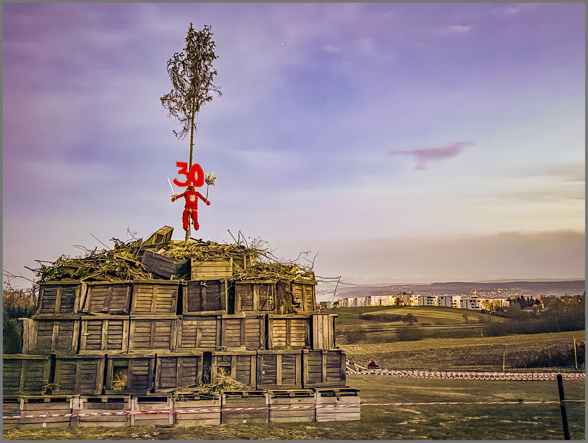 Der absolute Schlusspunkt der alemannischen Fasnet sind die „Funken“. Auch am Bodensee brennen am Wochenende nach der Fasnet auf vielen Bergen und Hügeln die „Funkenfeuer“. Die Narrenzünfte bauen dazu mehr oder weniger große Holzstöße.