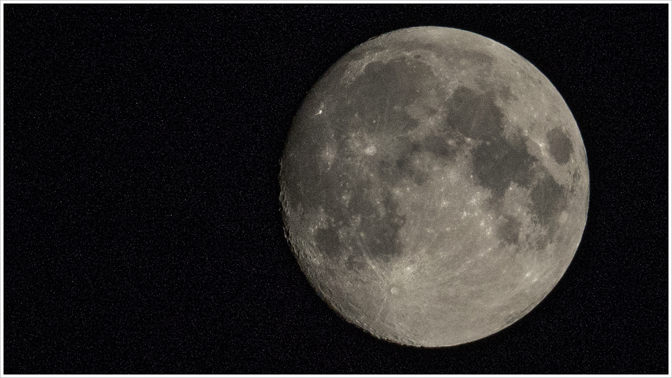 Ganz anders den Abend davor, als ich extra zur Generalprobe mit meinem Enkelsohn dort war und jede Menge coole Bilder vom – schon fast kreisrunden – Vollmond machen konnte. Mit dem 300 mm (analog 600 mm VF) Objektiv von Olympus kommt man schon so weit ran, dass man schon fast damit rechnet die verlassenen Landemodule der Apollomissionen zu sehen. aber da fehlt dann wohl doch noch ein wenig an Nähe und Schärfe.