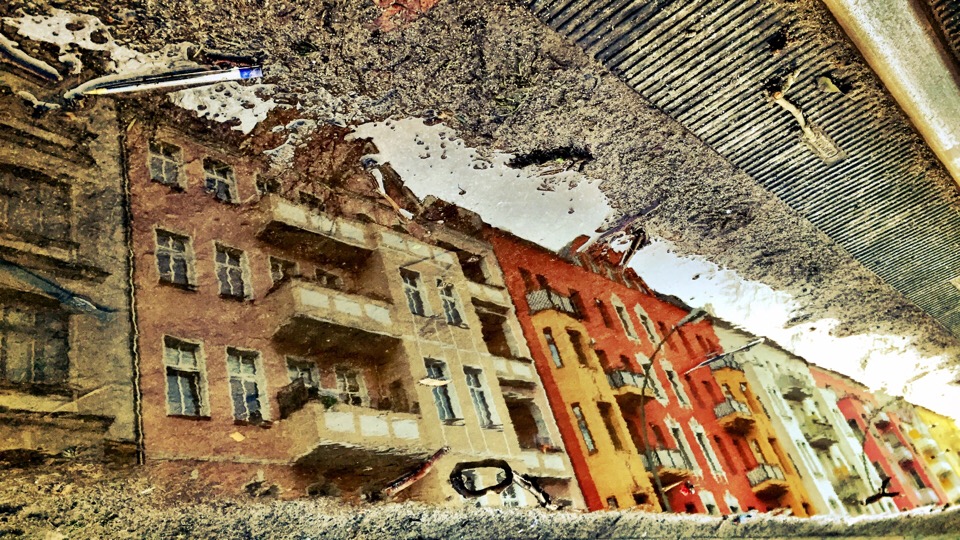 Da es in Berlin wieder regnet, manchmal auch schneit und gleich wieder taut, gibt es auch weiterhin hier schöne Pfützen zu sehen. Dieses farbenfrohe Exemplar habe ich gestern beim Warten auf die Tram entdeckt und gleich auf das „Zelluloid“ des iPhones gebannt. Es zeigt die bunte Häuserfront der Warschauer Straße.
