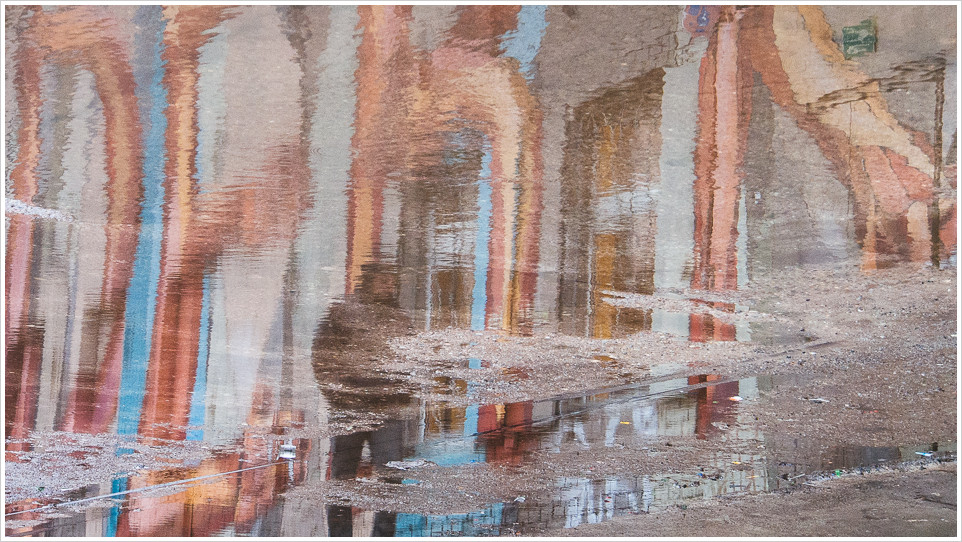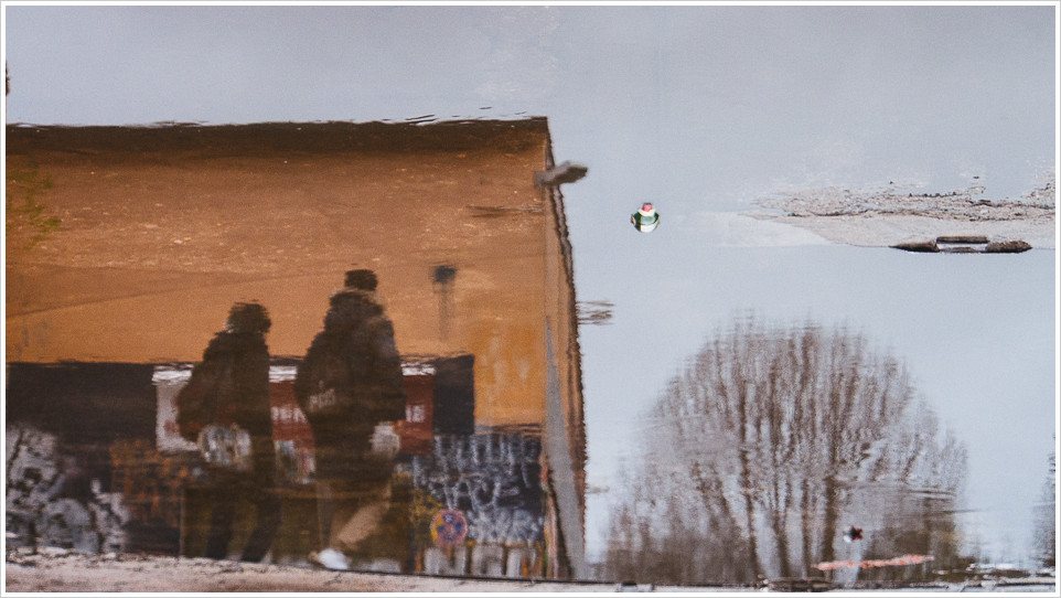 Ich bin ja nur froh, dass wir immer noch Plustemperaturen haben. Wäre echter Winter, hätten wir bei den andauernden Niederschlägen sicherlich schon einen Meter Schnee. So bleibt es bei Pfützen, die allerdings bei geeignetem Untergrund schon mal zu Seenplatten mutieren können, die man selbst mit Ultraweitwinkel nicht mehr in ihrer Gänze erfassen kann. Das RAW Gelände in Friedrichshain lässt sich zum Teil nur noch mit Gummistiefeln durchqueren, oder balancierend auf Mauervorsprüngen. Dafür bietet es dann prima Perspektiven für die Fotografie von Spiegelwelten. Der Regen bringt Segen 😉