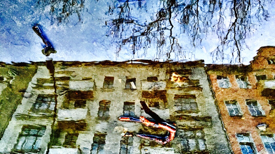 Wieder mal ein Bild aus der Pfützenedition. Meine Homebase am Comeniuspark im Spiegel der nassen Jahreszeit.