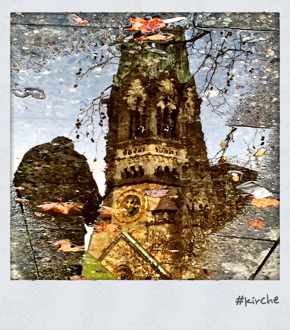 Bekannteste Kirche Berlins – Foto: h|b Heute mal ein Crossover aus zwei meiner Serien: Ein Pfützenbild kombiniert mit dem Polaroidrahmen. An Pfützen besteht ja nach wie vor kein Mangel in Berlin. Die kommenden Tage wird die Sonne mit der einhergehenden Wärme allerdings tüchtig aufräumen, auch wenn sich zum Ende der Woche, die Sonne mächtig verfinstern soll. Bin mal gespannt was die fotografische Aufbereitung dieses Ereignisses an Bildern hervorbringt.