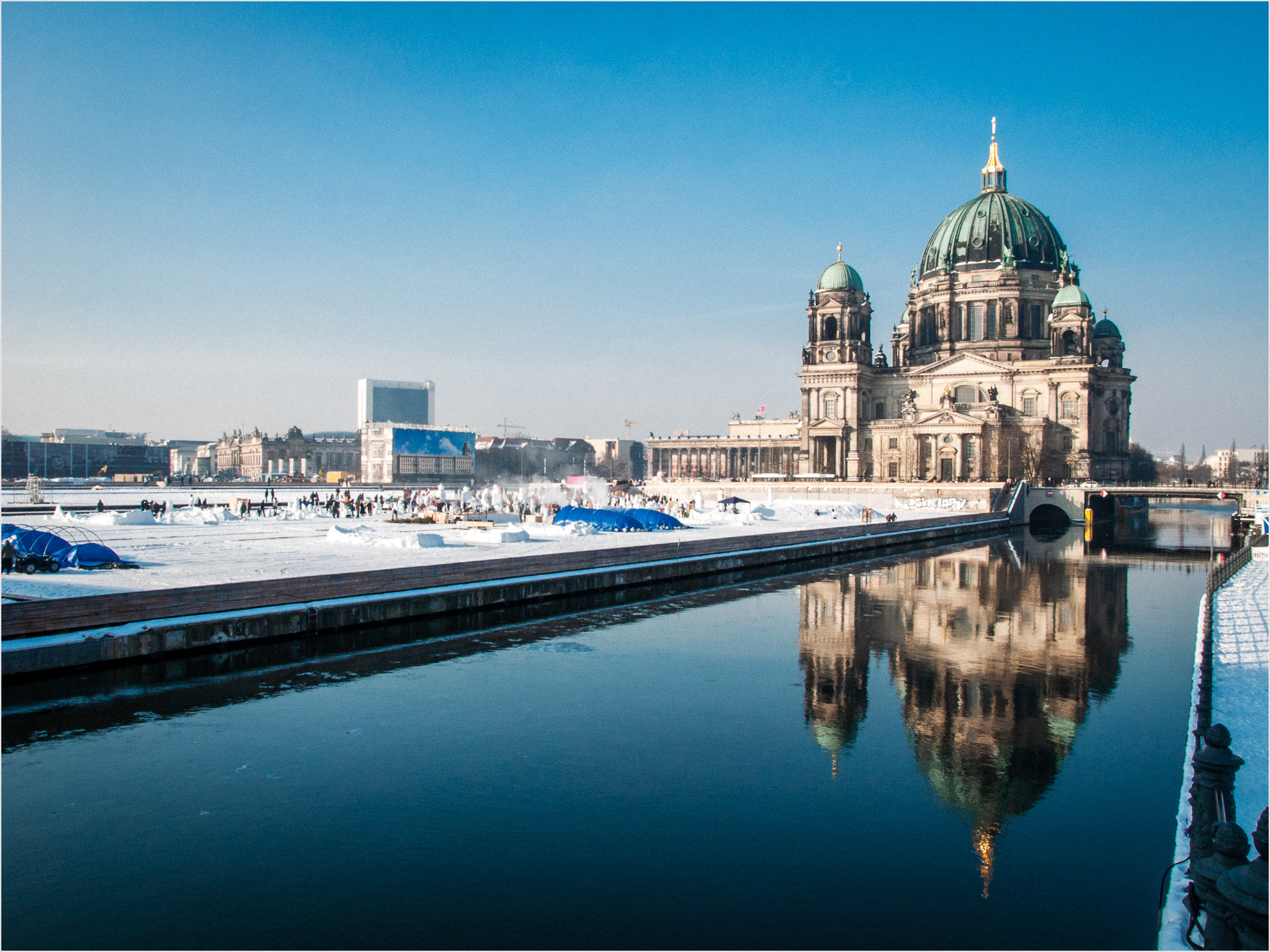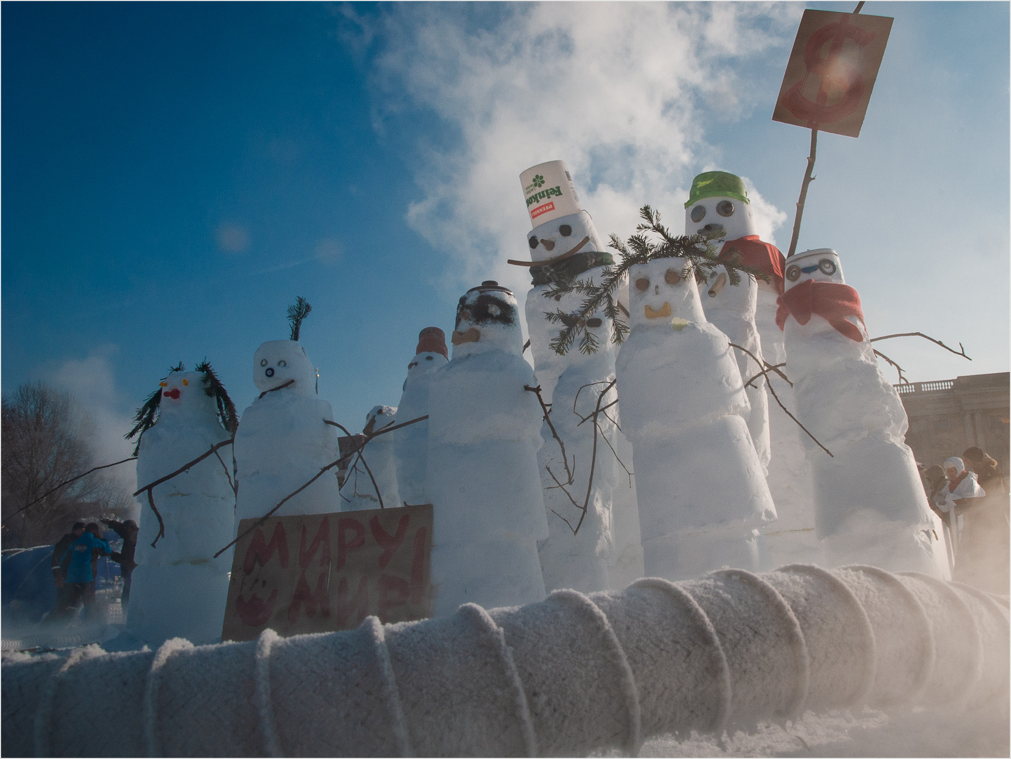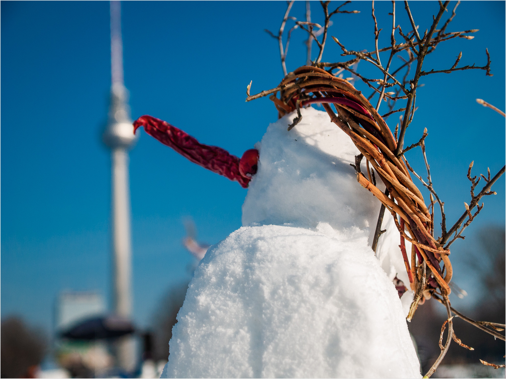 Im Winter 2010 fand auf der grünen Wiese des Schlossplatzes ein Happening statt. Ende Januar demonstrierten hier hunderte von Schneemännern bei -10° C zur Freude der Berlinerinnen und Berliner auf dem Schlossplatz in Berlin für mehr Engagement gegen die Klimaerwärmung. Von dieser war allerdings in diesem Winter kaum etwas zu spüren, sollte er doch als einer der längsten und schneereichsten in die Annalen von Berlin eingehen. Selbst die Kinder hatten irgendwann genug von dem weißen Zeugs und der Rodelberg im Friedrichshainer Volkspark verlor an Attraktivität. In dem Jahr konnte man sogar Eishockey auf dem Weissensee spielen. Ein echt verrückter Winter mit coolen Schneemänner und – frauen als temporäre Platzhalter für das Stadtschloss.