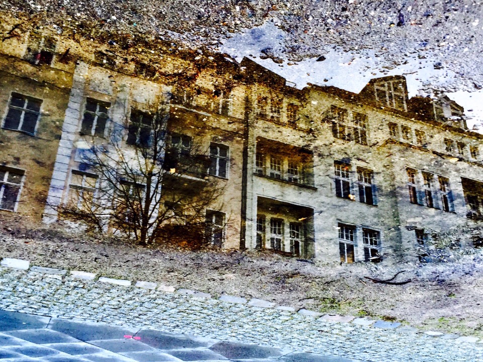 Wieder mal ein Bild aus der Pfützenedition. Meine Homebase am Comeniuspark im Spiegel der nassen Jahreszeit.